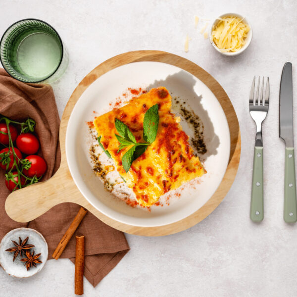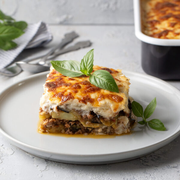 Ελαφρύς μουσακάς με γάλα αμυγδάλου, άπαχο μοσχαρίσιο κιμά και ψητά λαχανικά